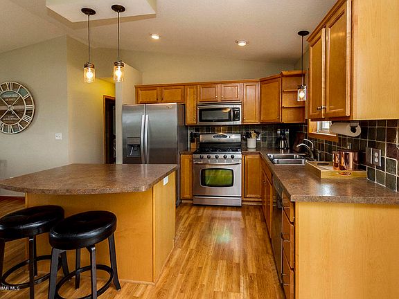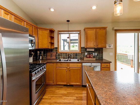 Beautifully kept 4 bed 2 bath walk-out split. This home features wonderful landscaping with a fenced backyard. Lower level patio with a deck and gazebo above, perfect for watching sunsets. Inside boasts an open floor plan with stainless steel appliances and backsplash in the kitchen plus a bar and fireplace in the lower level. A definite must see!