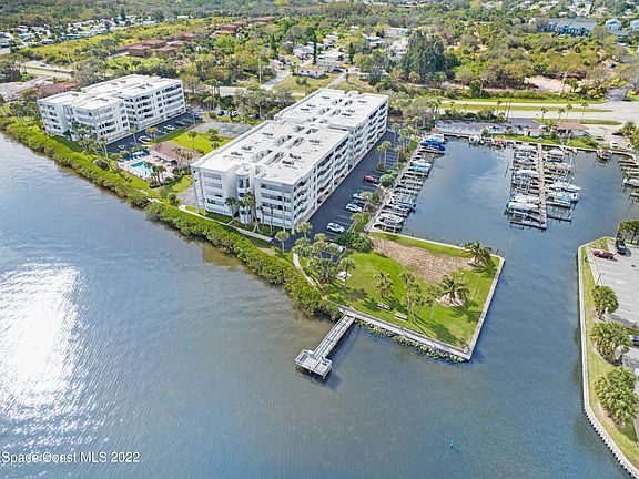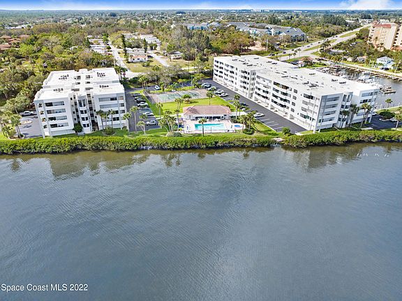 Calling all boaters...DEEDED BOAT SLIP WITH BRAND NEW LIFT INCLUDED! Beautiful doesn't even begin to describe the view from this private, gated riverfront condo. From the moment you walk in the front door, you're greeted by tons of natural light, and a straight line view of the Indian River. This floor plan is the perfect layout with 2BD/2BA and an office/den that is big enough to serve as a 3rd bedroom if needed. Unwind at the end of the day on the oversized wrap around balcony, or take in the spectacular sunrise on the private balcony off the main en-suite. There is also a 1 car garage (shared under the building) with an extra storage closet, as well as an additional reserved outside parking space. Rhum Cove can best be described as ''resort living''. The complex is impeccably maintained maintained