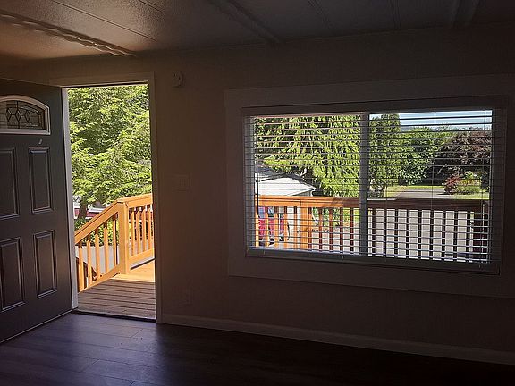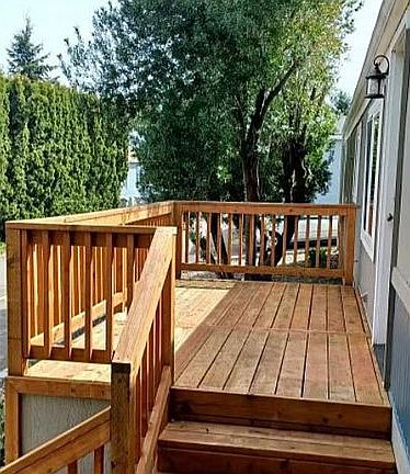 Knoll Terrace VIEWS & LOCATION!! Beautiful 2/1 home in the sought after Knoll Terrace community. Perched up on its own lovely knoll, this newly renovated single-wide home with detached shed & carport is in the perfect location to feel like you’re in the country but a quick 5 minute drive into town. You’ll find old-growth mature trees, lovely landscaped yards and homes with wrap-around porches and all kinds of views. Pet and kid friendly — affordable park fees include free gym, club house, playground and did we mention the views?! Also includes water, sewer, garbage and FREE cable. Built in 1978 and completely renovated in 2020, this home will last a lifetime. We will include the brand new (August 2022) Washer & Dryer, too! Priced to move! Serious inquiries only. And please, serious inquiries only. Must pass park mandated background & credit checks. Happy to help in whatever way we can! Includes water, sewer, basic cable. Move-in ready! Home was beautifully updated in 2019 with exterior paint, front and rear door and custom built front deck. Newer 12mm laminate wood flooring and baseboard throughout. Kitchen has newer white shaker cabinets, countertops, tile backsplash, sink, and lighting. Dual paned windows and faux wood blinds. Bathroom has newer vanity, sink, mirror, fixtures, tub and tile. Brand new interior paint throughout in 2022. Hurry won’t last!
