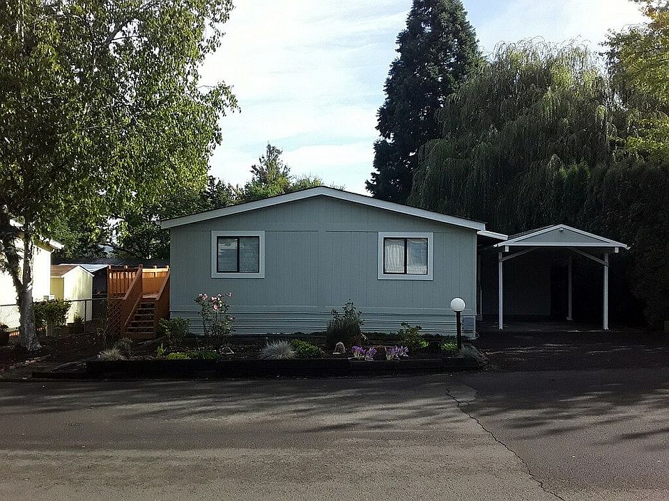 Nice 3 bedroom home with large fenced backyard in all-age Community. Private lot with mature landscaping. Patio doors lead out from living area to a custom built deck-porch. New carpet in bedrooms. All new exterior and interior paint (except for kitchen). Vaulted ceilings and ample closet storage. Home has a covered carport & two storage sheds. Pet friendly Community is located in a slightly rural area of N.Corvallis but is only 10 minutes from town. Excellent schools, close to hospital, and low monthly space rent of $595. includes basic cable, water, and sewer. Owner will carry loan w/minimum 50% down payment. CONTACT JOHN 541-630-1632