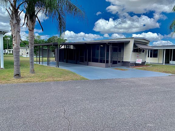 TOTALLY REMODELED!!! This home is located in a 55+ community with a lot rent of only $640 a month which includes water, sewer and trash plus the use of the amenities! You will have use of the pool, shuffleboard, the club house, billiards, darts, ping pong and several activities! There is also a washer and dryer if needed in the clubhouse! The community is close to several stores, restaraunts and medical facilities. Some are within walking distance! All of the neighbors and management in the community are very friendly! There is a new metal roof on the home and the entire home has been sided with new vinyl siding! There is a screen room attached to the home with an attached storage shed with a washer and dryer hook-up. The attached carport has plenty of room to park 2 vehicles or if you only need room to park 1 vehicle use the back of the carport as a covered patio! Step into this is very cute, clean and remodeled 1 bedroom, 1 bathroom home with an open floor plan! There are laminate floors throughout the home with the exception of carpet in the bedroom and vinyl in the kitchen, hallway and bathroom. The home has 2 window A/C units which cools the home very efficiently and will keep your electric bills low! This home would be a perfect home for a year round resident or would make a great snowbird home! There are finance options available if needed!!!! Also, if you like the furniture you may purchase separately for an additional $2,000!!!