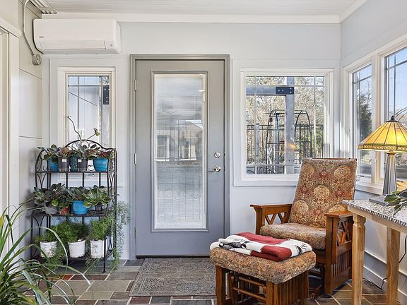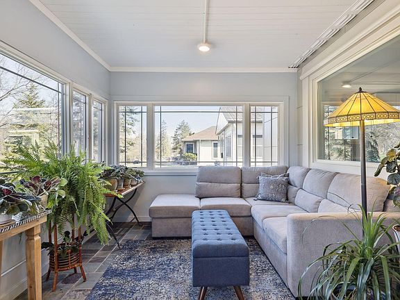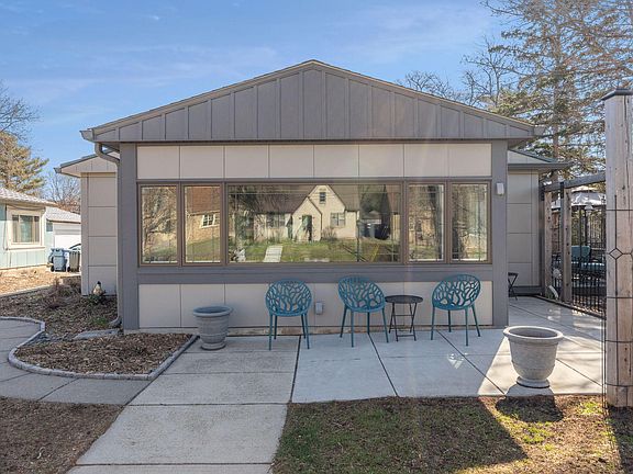 mantle, Feature wall. Modern updated kitchen, Front porch lets in ample bright light that washes over entire living area. Beautifully landscaped yard with retaining walls create great outdoor spaces. Home has a "shed" or storage room attached to the home with exterior entrance. Large 2 car detached garage with sky light. Great opportunity to own a historical Lustron home in MN, with all the modern amenities!