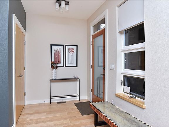 This home is striking. Custom closets throughout. Builder finished large multi-purpose lower level. Gourmet kitchen with Euro-style cabinetry, stainless appliances and granite slab counter tops with undermount sink. All bedrooms on their own level with their own baths and decks. Stunning interior finishe materials include maple floors, horizontal metal stairway detailing, vessel sinks and sleek faucets. Paths and parks out the front door. Square footage approximate, buyer to verify. Finished garage complete with drywall and overhead storage. Please arrange a showing. This is not to be missed home. Feels like a detached home, without the maintenance!