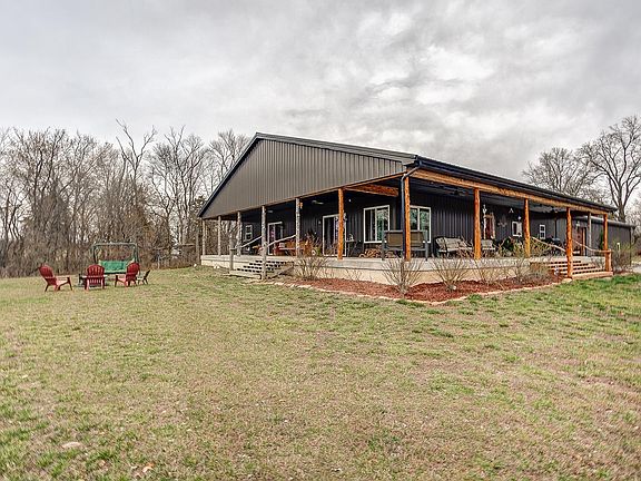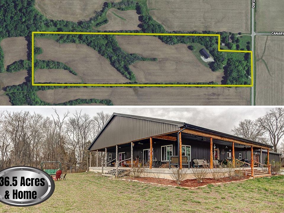 This is an excellent find!!!! This 4 bedroom 2 bath barndominium was built in 2019 and sits on 36 acres of a tillable wooded mix. This 50 x 110 structure allots 50 x 60 to storage/toy space (otherwise known as a garage, but big enough to store a camper) and then 50 x 50 is built on a crawl space and is finished in comfortable cabin living with rough cut cedar and poly vinyl plank thru out. There is a large great room with a vaulted ceiling - this space is the kitchen, dining room and livingroom. There is also a master suite with a master bath and walk-in closet. The home has an excellent wrap around porch to enjoy and watch the wildlife on the 36 acres of land. Excellent deer, turkey and mushroom hunting.