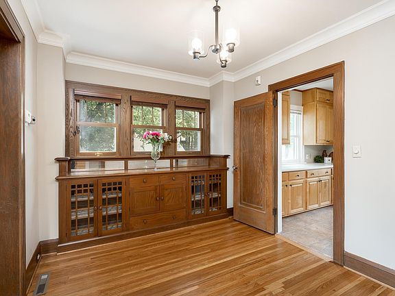 Charming story and a half set between Minnehaha Creek and Lake Nokomis. Amazing location and setting close to bike paths and lakes. 61 years of ownership pride combine with notable original details.Newer screened in front porch, custom built-ins throughout with MAC improvements in early 90's (windows, roof, siding, insulation, mechanicals). This corner lot location is slightly elevated over the road with mature trees, flower beds, and direct driveway access to the 2 car garage. 2 Bedrooms on the main floor while one leads to the upper half story - Suite or combination bedrooms/nursery. Open living and dining area with newly finished hardwoods on main level. Kitchen is located on the back of the home with access to the lower level and backyard. Many options available in lower level where laundry, newer mechanicals, a family room, and a massive storage/hobby room.Impeccable condition, great curb appeal, so well taken care of, and ready to be your own!