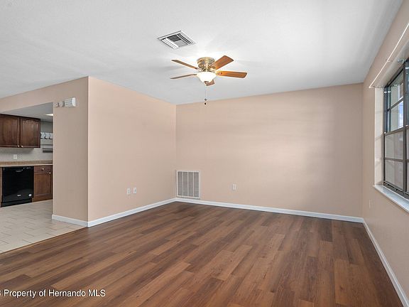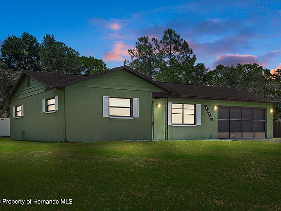 Stunning 3-Bedroom, 2-Bathroom well maintained home in the heart of Spring Hill on a corner lot. Perfect investment opportunity, retirement, or starter home. This beautiful home welcomes you into a large living room flooded with natural light. Entertain with easy utilizing the spacious dining room just off the expansive kitchen highlighted with tons of storage and countertop space. Retreat to the master bedroom showcased with sliding glass door to the rear screened porch and amazing en-suite bathroom featuring a spacious tiled shower, large vanity and walk-in closet with barn doors and tons of storage. Guests can enjoy their own privacy with 2 ample guest bedrooms both with large closets and shared a guest bathroom with a large vanity, tub/shower combo and two linen closets in the hall. 12x12 screened rear porch provides even more room for entertaining and is perfect for those with a green thumb. The screened garage houses the laundry hook-ups including a laundry tub, service door to the yard, cabinets for storage and multiple work benches. Reroof 2021. Conveniently located near shopping, restaurants and many other local amenities. This home will not last long so book your showing today!