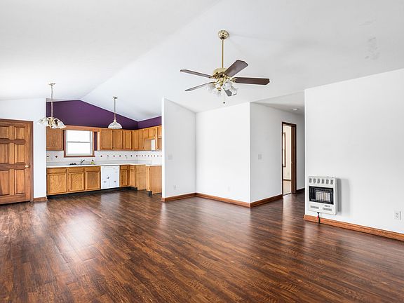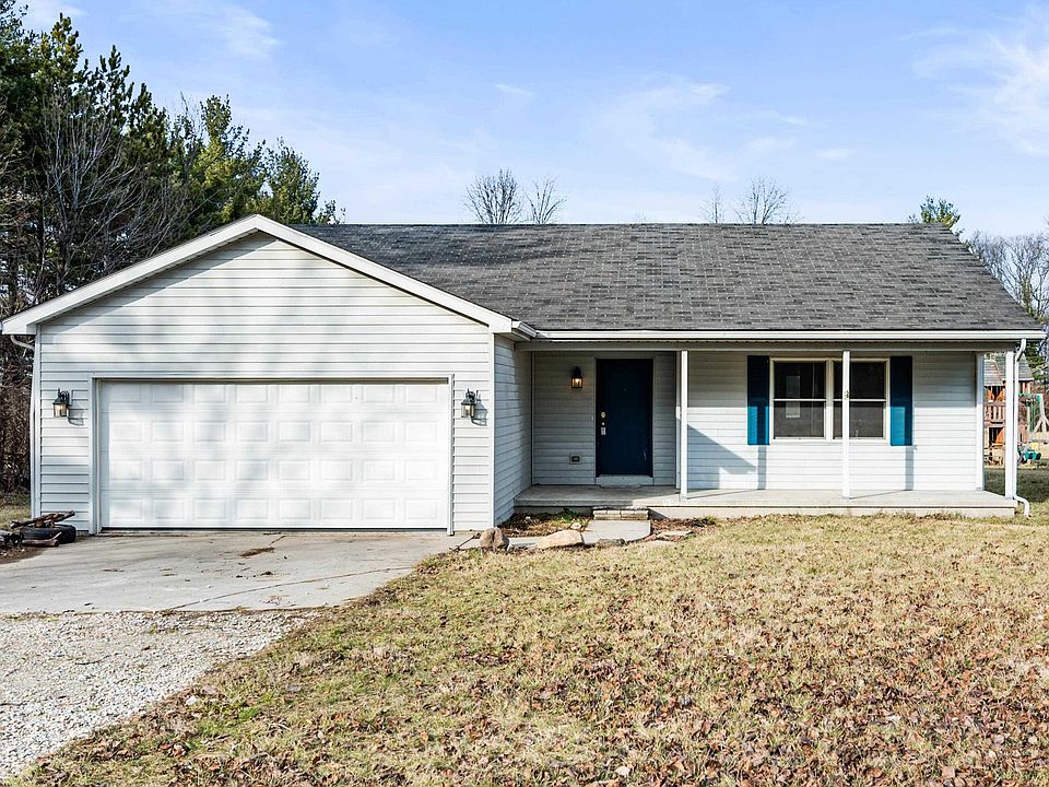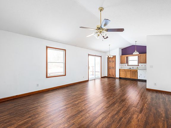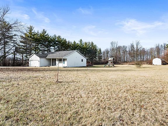 Come on out to the country! Located on a peaceful 1.3 acres on a gravel road this home will suit almost anyone! The split floorplan offers a Master Suite with a large closet and a walk-in shower and two other bedrooms on the other side of the home. The bedrooms are all newly carpeted and the living areas feature newer laminate flooring. And don’t forget the wood deck and play set in the backyard! Water softener is a rental.