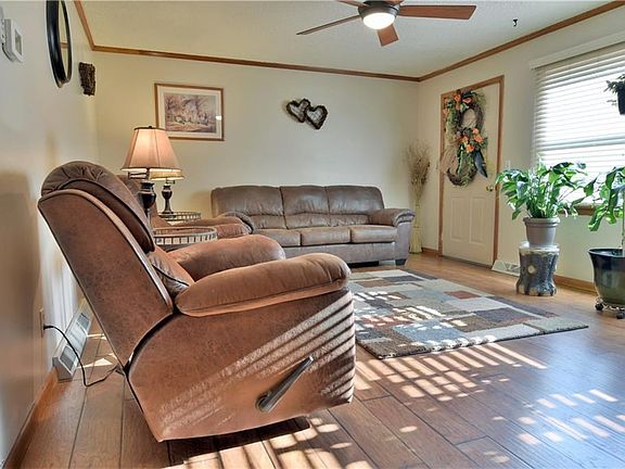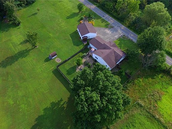 Stunning property with huge living space and land! This 3 bedroom 2 full bath ranch home features an oversized driveway with an attached 2 car garage and a detached 3 car garage. The well-manicured yard stretches out to include a rolling side yard that extends out to meet a picturesque field; serving as a beautiful backdrop from the back patio. A fenced in backyard ensures privacy and encloses a rock garden with picnic seating as well as a raised rear deck. Inside the home, sun-filled and spacious rooms await, starting with an inviting living room with laminate flooring and matching crown molding. A brief hall way leads towards a deep-set master bedroom, boasting massive closet space and lighter hardwoods style flooring. Across the hall, a full bath lends an inset vanity that's paired with a full-sized shower and commode. A second, smaller bedroom completes the main hall. Back towards the living room, an expansive updated kitchen is home to a joined dining area. Natural wood cabinets are matched with ceramic tile flooring and a tile backsplash. Nearby, a spacious family room beckons to include both rear patio access and the far hallway entrance where a prominent second full bath with laundry area. The 3rd large bedroom with great closet space is at the end of the hall. Downstairs, a half-finished basement reveals a wood paneled rec room along with additional storage. All appliances are staying, 2-10 Home Warranty, and seller is willing to replace septic if required by TCBOH.