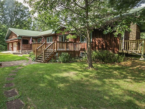 Spacious 3 bedroom 2 bath country home on 2 wooded acres. Wood fireplace, ceramic tile, large family room downstairs. Double attached garage. Also a 48x26 garage/workshop. Nice deck and outdoor hot tub.