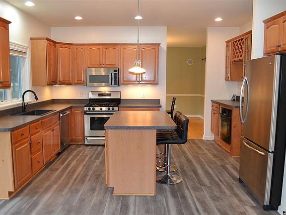 Fabulous Find! Bright and open 4 bedroom, 2.5 bath colonial situated on a private and lovely lot. Featuring kitchen with maple cabinetry, center island and stainless appliances. Family room with fireplace, 1st floor office and wood floors in dining room. Spacious master bedroom suite with upgraded bath. Solar panels and two-zone heating! Walk to Pine Bush Elementary!