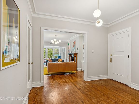 Prepare to be wowed! This stunning 3BR, 2BTH home combines timeless charm and modern aesthetic. It also offers over 1,800 square feet of living space, very generous rooms sizes, an open layout and lots of original detail including crown molding, elegant vaulted barrel ceiling in the main hallway, original butler's pantry and built-in book cases everywhere. Sitting on a lovely tree-lined street, just one block from the lakefront and Foster Beach, the location can't be beat! Steps to everything, including the red line Arglye or Berwyn stops, Lake Shore Drive, 147 express bus to downtown, Tweet, Big Chicks, Mariano's, Jewel Osco, and only minutes to the Argyle Asian Food District and all the shops and bars along Clark Street in Andersonville as well. This home has been impeccably maintained. Very large foyer opens up to a spacious and light-filled living room with fireplace and adjacent sunroom. An oversized dining room that will fit any sized table adjoins the gracious living room with a butler's pantry conveniently situated between the kitchen and dining room for extra storage and perfect for entertaining. The kitchen features all high-end Bosch stainless appliances including double ovens, built-in 5-burner stovetop, and new dishwasher (2022), in addition to a built-in wine fridge, extra-deep stainless-steel sink, granite countertops and high-end cork flooring. The primary bedroom suite bath features dual sinks, a deep soaking bathtub, new fixtures, updated electric and a Toto Washlet Bidet. Very large 2nd bedroom has two walls of shelving and good closet space. 3rd bedroom is currently used as a home office. This home has central air and heat with Nest Thermostat, in-unit washer and dryer, Custom Hunter Douglas shades in kitchen, bathrooms, and third bedroom. Monthly assessment includes premium cable package + high-speed internet, water, garbage, snow removal and common area cleaning. Entertain outside in shared, cozy outdoor courtyard perfect for summer cocktails or alfresco dining. Ample secured storage for bikes and more. Easy street parking or rental parking options in the area.
