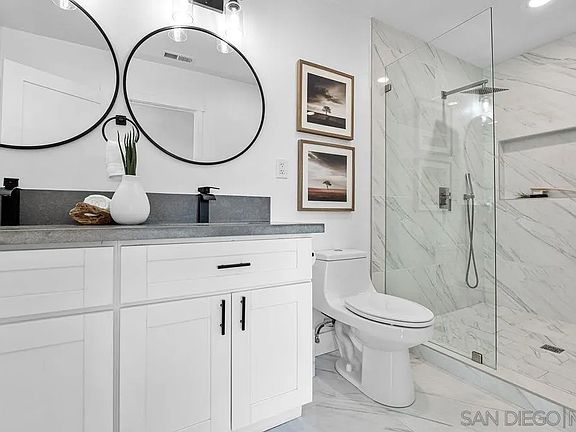 Back on the market through no fault of the sellers. Don't miss this opportunity! A Must-See! This stunning Bay Park home offers breathtaking views of Tecolote Canyon and the University of San Diego. Perfectly designed for entertaining, this turnkey property boasts a spacious 64x36 ft deck, complemented by a 15 ft accordion door that opens seamlessly to the canyon, creating a harmonious indoor-outdoor flow. Inside, you'll find elegant wood floors, recessed lighting, and a chef's kitchen featuring a sleek white quartz waterfall island, quartz countertops, and high-end stainless steel appliances, including a double oven. For added convenience and security, there's a bonus room with fingerprint access. This home is truly a showstopper, combining style, functionality, and stunning natural views.