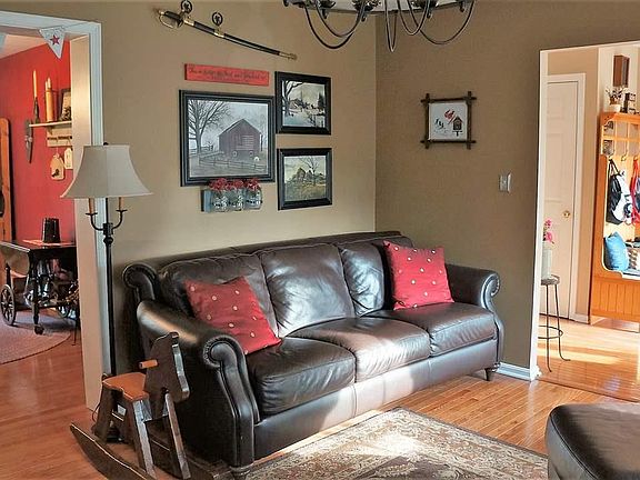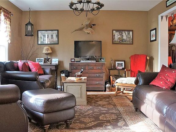 Large circular driveway approaches the home perfectly situated on this wooded lot. Decorated nicely throughout which creates that warm home atmosphere. Very nicely done rooms, which are all nice size including the kitchen, dining room, living room and den on the 1st floor. Also, large laundry room area. Master bedroom with Master bath. Two additional bedrooms are good size. Full hallway bath. Excellent backyard that offers a lot of summer fun! Great for sports enthusiast, hobbyist or those who need to house vehicles of all types. Unique exterior areas for storage or recreational vehicles. Also, metal pole barn with electric seller will add water.
