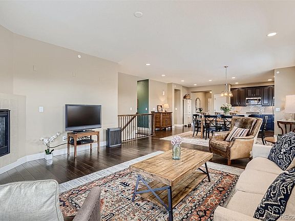 Seeking a perfectly executed home overlooking mountain and open space views? One-level living with generous rooms and plenty of sunshine? Quiet neighborhood with wide streets, manicured lawns, community pool, playgrounds, and cul-de-sac living? This beautiful home checks all the boxes! Picture-perfect rancher perched just so to provide all-day natural light and beautiful vistas. Actual entryways from front door and garage. Expanded wood floors to the primary bedroom and repainted extensively in the past 2 years. Gorgeous kitchen with expansive cabinets and all the features you need for entertaining. Private office set apart from living and bedroom areas. Walk-out basement with 9-foot ceilings, easy to fully or partially finish to expand living options (plumbed for full bath). Large deck off the family room for outdoor dining. Patio off basement sliding-door access allows for easy entry to a fully fenced yard. All new roofing system including new gutters and downspouts in 2021. Furnace blower motor replaced in 2022. 5 minutes to CO36 for easy commuting in any direction. Be near to everything while retreating to your own private haven.