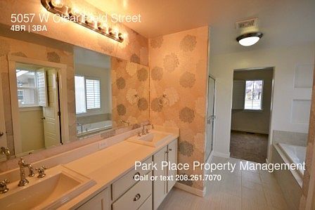 SCHEDULE A SHOWING ONLINE AT: showmojo.com/lh/630100b094 This gorgeous home has everything you could ask for. Located in West Eagle's prestigious Legacy Subdivision; you'll enjoy a residential community that is focused around a number of water amenities, walking paths, parks and recreational facilities. With 4 bedrooms and 2.5 baths, spanning 2100 sqft, there is room to stretch-out, relax, and enjoy all the amenities and numerous custom upgrades which include detailed tile work, hardwood floors, craftsman's molding and over-sized windows throughout. You'll feel right at home in the spacious great room with it's vaulted ceilings, decorative fireplace and open concept floor plan. The kitchen opens to the living room and sits adjacent to the large dining area to make serving meals or entertaining both convenient and care free. Fully equipped with stainless steel appliances (gas range, microwave, dishwasher & fridge) storage pantry, and granite counter tops. The master suite is impressively large and features a walk-in closet like non you have ever seen. You'll also enjoy the soaker tub, walk-in shower, tile floors and double vanity with granite counter tops. Additionally, you will have full access to all the subdivisions recreational facilities including a 24- acre three-hole executive practice golf course, four tennis courts, a swimming facility with clubhouse and soccer fields. Call 208-261-7070 for additional information. You can also fill out an application on our website at www.parkplaceid.com **This information is deemed reliable but not guaranteed. Information is subject to change**