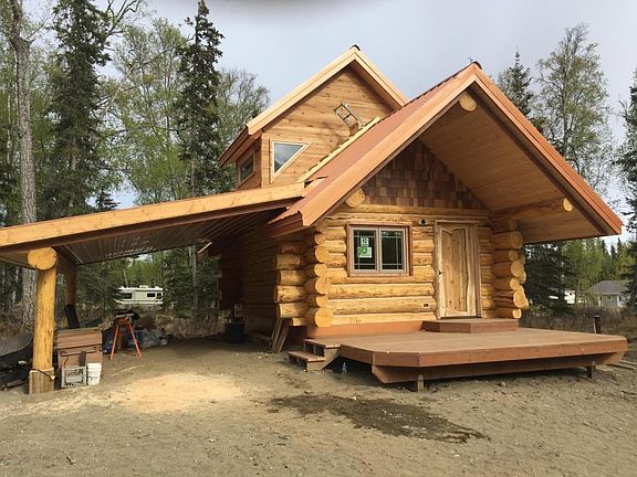 New Custom Built Efficient Alaskan cabin surrounded by trees and privacy. Close to hunting, fishing, trail riding and adventure. Built by licensed and bonded contractor with attention to detail throughout. Invest in yourself and enjoy your very own piece of Alaska. Invest in yourself today!Built to last with huge logs and poured concrete foundation.Call today Seller is willing to change stairway so home will finance with VA, FHA, Conventional Owner Finance with acceptable terms