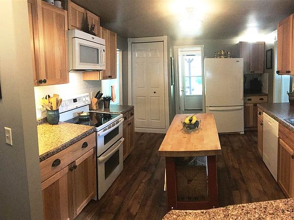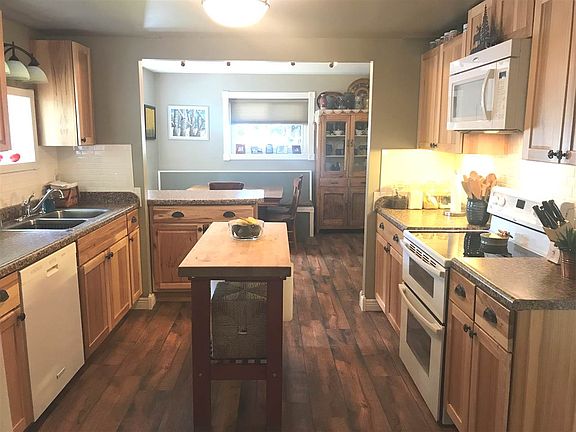 Delightful, park-like, 40-acre parcel surrounds this adorable home! Enter into the enclosed front porch, a bench with storage and tons of cabinet space make this a perfect for all of your outdoor coats and supplies. The porch leads to the kitchen. This warm space was updated in 2012 with cabinets, countertops, appliances and industrial grade laminate flooring and handy pantry. The dining area has a built-in banquette seating also with storage. The living room is quite large with a cozy wood stove added in 2013. A main floor bedroom was remodeled in 2018. This room is large with a huge walk in closet. The main floor bath has a walk-in shower with glass door and lovely vanity, this room was redone in 2016. The main floor laundry, redone in 2017, leads to the open back porch and completes the main floor. The second floor features a large open area at the top of the stairs with a 1/2 bath, perfect for an office or playroom. This leads to a walk-through bedroom (no closet) and a very large bedroom with nice closet. This very unique home was originally a timber stack home, see behind the board at the bottom or the stairs. Along with the updates listed above are: roof in 2015, furnace and water heater in 2014, spray foam insulation in attic in 2016, and a 100-amp electrical panel. The studio, (originally a sauna), was updated in 2016, this cute as a button building has endless possibilities, and includes a refrigerator and small wood stove. An oversize 2 car garage has plenty of room for vehicles, toys and workspace. The property is full of berries and sugar plums, easily accessed by the over 1 1/2 miles of trails cut through the property. Two fire pits and 2 deer stands along with gorgeous perennial gardens are scattered about the property.