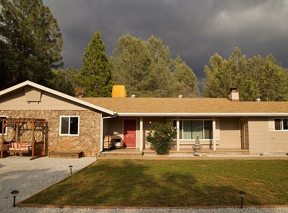 Spacious home 2 miles from downtown Mariposa, only a 3 minute drive. 3 bedroom 2 bath, 1860 square ft home with an additional room that can be used as a movie room, family den or another bedroom. Master bedroom has two walk-in closets and a his and hers sink in the master bath. Laundry hook ups are located inside the home. Front bathroom has just been completely remodeled. New dual pane windows and new R-49 insulation throughout the attic installed in 2017. There are 2 garages, one is attached to the house and the other is detached. The newly updated detached structure is great for a game room, man cave or workshop. The house sits on a little over a half an acre with views of town and Mt Bullion. The kitchen has been fully remodeled and a wood burning stove insert has been added into the fire place. There is a large bay view window in the living room, the entire home maintains its warmth in the winter and coolness in the summer. There is a large fenced in front yard that has a concrete slab used as a sitting area with a built in fire pit, perfect for enjoying the beautiful sunsets. Everything in the home is fully functional and it is completely move in ready.