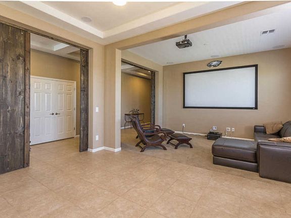 Highly-upgraded one-owner home on a prime corner lot backing an expansive common area offers 3 large bedrooms & 2.5 baths in 2638 SqFt with separate living/flex, dining & great rooms. The kitchen has an abundance of maple cabinetry, granite counters, stainless appliances & large island with breakfast bar. Sliding doors lead out from the casual dining nook & family room to a fabulous, private backyard! You'll love the sparkling pool with water feature, extended covered patio, additional paver patio built-in BBQ & mountain views! Split bedrooms. The master retreat has dual vanities, separate tub & shower & walk-in closet. Other features include an extended 3 car tandem garage with built-in cabinets & service door, custom barn doors, tray ceilings, OWNED SOLAR EQUIPMENT, built-in shelving in