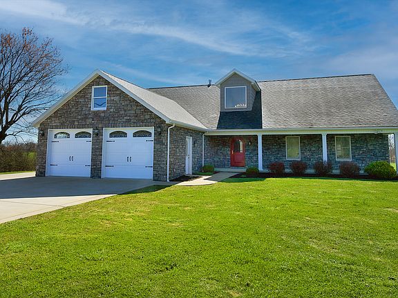 Escape to the tranquility of this pristine 44.56-acre farm nestled in the heart of Ritchie County, West Virginia. Beyond the stone gated entrance, a picturesque scene unfolds as you traverse down the concrete drive, leading to the masterfully crafted stone home that serves as the centerpiece of this idyllic property. Step into the grandeur of the main living room, adorned with an exquisite Austrian Swarovski chandelier, real hickory hardwood floors, and a double-sided gas fireplace that seamlessly divides the space and kitchen. The culinary enthusiast will delight in the kitchen's elegance, boasting beautiful quartz countertops, stainless steel appliances, a double oven, gas cooktop, and walnut cabinets. Adjacent to the kitchen, an elegant dining room, illuminated by a tray-lit ceiling, offers ample space for gatherings with loved ones. Extend your living space outdoors onto the covered balcony overlooking the rolling pasture land—a perfect setting for outside dining, equipped with a gas port for grilling and ceiling fans for comfort. Retreat to the spacious and cozy primary bedroom, complete with a tray-lit ceiling and two walk-in closets featuring walnut shelving. The ensuite primary bath beckons with its luxurious amenities, including a heated tub strategically positioned to provide breathtaking views of the horse barn and pasture, a spacious glass door shower, double sinks, quartz countertops, and walnut cabinets. Descend into the lower level, where another living room or bonus room awaits, featuring a fridge, quartz bar, and radiant floor heating—a perfect space for relaxation and entertainment. Stay active in the workout room, complete with built-in walnut shelving for storage and a built-in desk for added convenience. Never worry about losing power in the house or having to fuel the whole house generator, as it is piped directly into the free gas that is available on the property. The two-stall garage offers heated flooring, ensuring comfort year-round. Outdoors, the horse barn stands as a testament to equine luxury, with four 16x12 stalls boasting stunning European stall fronts and heated Nelson waterers. Additional features include a heated wash bay, spacious tack room with one cedar wall with six mounted saddle racks, additional saddle pad racks, and adjacent bridle hooks, gas heat, sink, cabinetry, and a bathroom. A heavily insulated 40x60 steel building provides ample space for storing farming equipment and supplies. The property also boasts approximately 15.5 acres of lush pasture ground and hay fields, enclosed by high-tensile and ribbon fencing, along with a small pond and a trail installed for many horseback rides. Ample deer and turkey are spread throughout the property, offering lots of great hunting opportunities. Or take advantage of day ride opportunities off the farm locally at Wayne National Forest, North Bend State Park or the Rails to Trails with convenient trailer parking right in Ellenboro. With its captivating ridge-top views, this property offers a rare opportunity to embrace the beauty and tranquility of rural living in style.