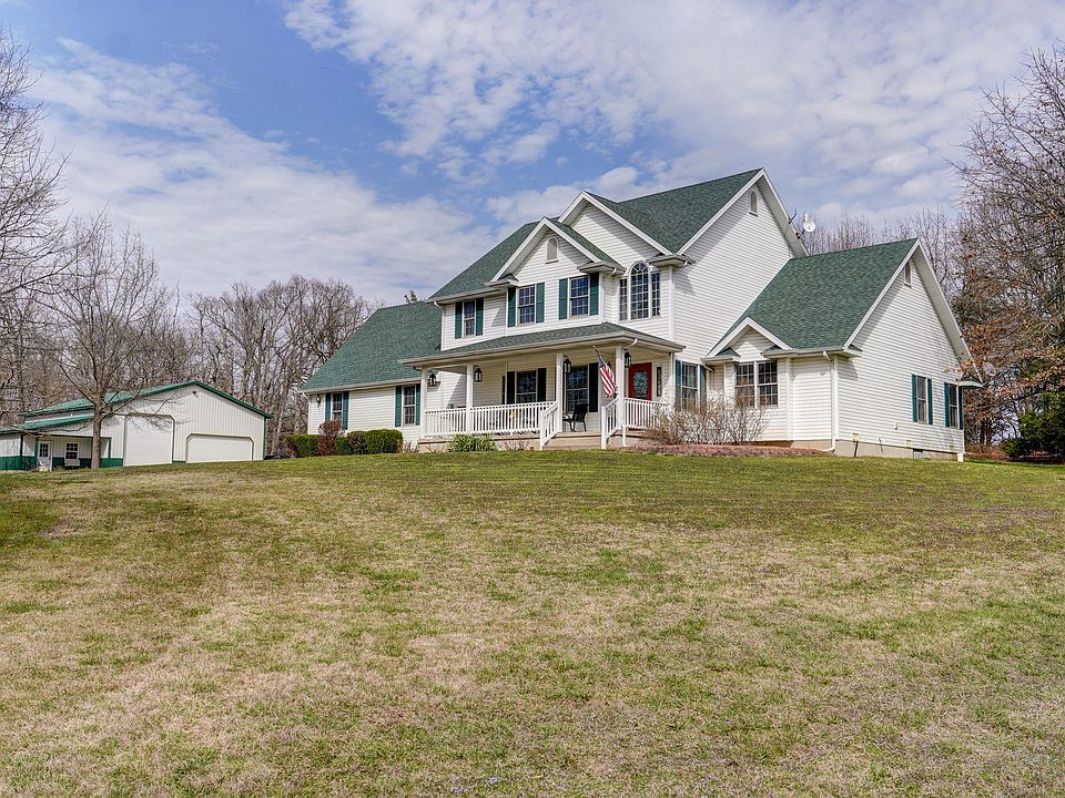 A RARE FIND! AMAZING LOCATION WITH PRIVACY & AMAZING VIEWS! ONLY 5 MINUTES TO REPUBLIC! Beautiful 1.5 Story Home on 20 picturesque acres. Great for horses, cattle, hobby farm or a nature lover. This home features approximately 2560 sq ft, with 4 BRs & 2.5 Baths. 40x50 shop w/ attached 16x42 finished studio & a 40x40 3-stall horse barn. This spacious home boasts 17 ft ceilings from the entry way through the living room with a 17 ft. stone fireplace as the focal point. Large master suite on main floor. Kitchen has a walk-in pantry, large breakfast nook & center island. Formal dining, 3 bedrooms upstairs with a full bath. The 4th bedroom is the bonus room upstairs. It is large enough for an additional family room, craft room, & is the non-conforming 4th bedroom. Attached oversized 2 car garage. Across the paved driveway is a 40x50 shop with full RV hookup, wood-burning stove, and lots of space for your 45 ft RV & other vehicles. Attached to the shop is a 14x42 finished studio w/ central heat & air. Studio includes 1/2 bath & large storage area. This could be used for a home business, home-schooling room, company, or in-law quarters. 40x40 3-stall horse barn with loft storage. 5 acres is fenced for grazing, with more land that could be fenced. This home is in a neighborhood w/only 8 other homes. All homes are on 5 or more acres. It sits on the largest lot, at the end of a dead-end road & also has a .10 mi. driveway, w/lots of trees, giving you privacy. The 20 acres includes over 1/2 mile of wide, manicured trails for walking or riding through meadows & woods. Enjoy birds, deer & sunsets. Great for bow hunting & 4 wheelers! Large raised-bed garden, fertilized & ready for planting. Plenty of room for your chickens. This home has fabulous curb appeal w/unlimited outdoor entertaining possibilities. Enjoy sunsets & great views from all three patios. Location is unbeatable, only 5 minutes to Republic & 20 minutes to Springfield. Don't miss out on this amazing property