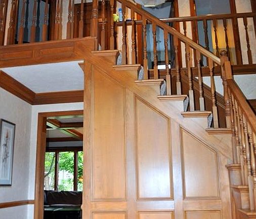 - Interior: Attic Access, Built In Book Shelves, Ceiling Raised, Hardwood Floors, Windows Thermal, Wood Work Stained