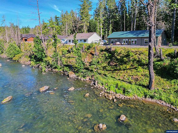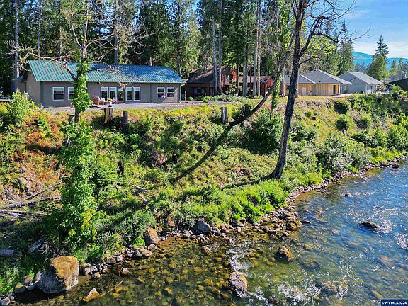Motivated Seller. Dream home! Beautiful 2022 custom built home on the Santiam River. Hear the sounds of the river from the great room and both master suites, home has no shortage of top-of-the-line features and was built to a higher standard than code such as heavier foundation and pier blocks, metal roof, extra overlap on the siding, plumbed for propane. Patio on the river, oversized garage, RV area with cover, metal roof. Home is turnkey and ready for your immediate enjoyment.