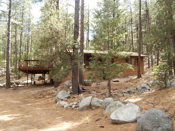 This could be the one you've been looking for! 3 bdrms/1 .5 bath/1 level. Central heat + wood-burning stove. Ceiling fans. Cabin sits on an absolutely beautiful piece of property in a gated area just off paved Walker Rd. Lots of flat, easily walkable land. Tall pines and boulders. Large deck for partying with friends and family or just relaxing and enjoying the cool mountain air. Plenty of storage in unfinished basement. HOA annual dues are for road maintenance and shared well maintenance.