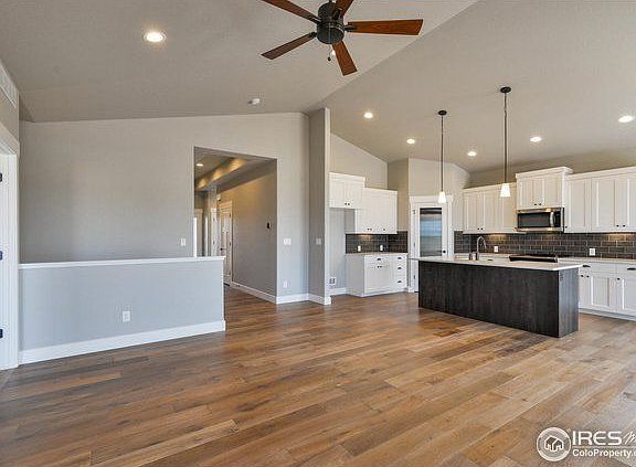 Copper floor plan w/3BD, 2BA, 2 car oversized garage with 8 ft doors. Big open kitchen w/large island, quartz countertops, stainless steel appliances, Milarc cabinets, pantry, luxury vinyl plank flooring & vaulted ceilings. Gas fireplace & A/C included in price. This lot backs to private greenbelt. Non potable irrigation water, one time fee of $1,800 at closing. Timnath Ranch Metro District.