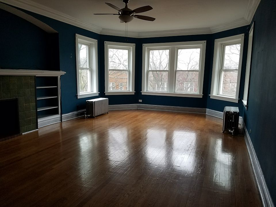 JUMBO 3bdrm Unit. This unit has Living room, dining room, in unit laundry, hardwood floors, art deco fireplace with built-in book cases and garage parking is also available. Heat included. Double lot at the end of a cul-de-sac right across from Eugene Park Art Center and the Gompers Park Greenway. The view North is panoramic. Close to Northeastern and North Park University. No application fee Move in fee is $250 per person