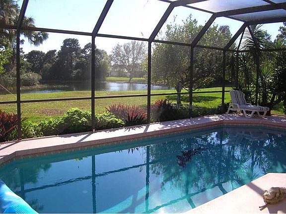 The popular community of Southwood is the setting for this almost 2500 SF custom Arthur Rutenberg home, which features a gorgeous lake view that will steal your gaze as soon as you open the double front doors. Look directly through the formal living room to the expansive lanai, then to the recently re-marcited, self cleaning, solar heated pool with favored southern exposure. Relax in total privacy, and capture the priceless view of the water, with a wooded preserve beyond, and no neighbors looking back at you. You may not want to go back inside! The seasonal owners just installed a new roof for peace of mind, and the A/C is only 4 years old. There is also an electric pool heater for backup service. Your galley kitchen, with newer appliances (dishwasher & disposal are brand new) opens to the casual family room with wet bar and wood-burning fireplace. There is breakfast bar seating and an adjoining dinette room for most meals. You also have a formal dining room for those special occasions. The huge master bedroom has sliders to the lanai, walk-in closets, and a bath with dual vanities, glass shower, and soaking tub. There are 2 guest bedrooms in the split plan layout, and the convenient laundry room has a new washer, storage cabinets, and a utility sink. An oversized 2 car garage completes the picture. Mature landscaping shrubs and trees, along with classic concrete curbing finishes the Florida living experience. Your new home is located near shopping, restaurants, and world famous beaches. Welcome home!