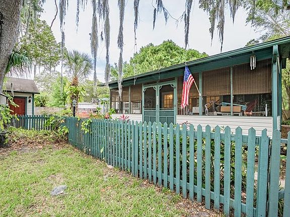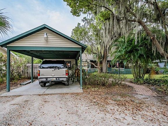 Located in the historic district of West Palmetto, this custom built cottage designed home possesses a true charm and old Florida feel. Set over 90 ft from the public road, with beautifully mature landscaping throughout, the home features two bedrooms, 1.5 baths, with a 15X16 upstairs loft that can be used as a third bedroom, office, or playroom and 6x28 attic storage area. Large 10X28 screened in front porch with French door entry, hard wood cabinetry and lots of storage in the kitchen, with vaulted ceilings giving the home that open and larger feeling. Stainless steel appliances updated less than 5yrs ago, along with light fixtures in the living areas, and guest bathroom upgrade. Living room/dining combo with ceramic tile, and skylights which provide great natural light. Privacy fence in the backyard with outdoor shower, and detached carport with an attached 14X14 workshop supplied with electric and split A/C unit. The home has been maintained quarterly for wood destroying organisms. Current flood insurance policy is less than $850 annually!!! Located within great proximity to the Green Bridge, Regatta marina, and Sutton Park.