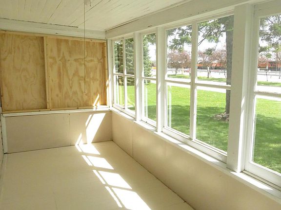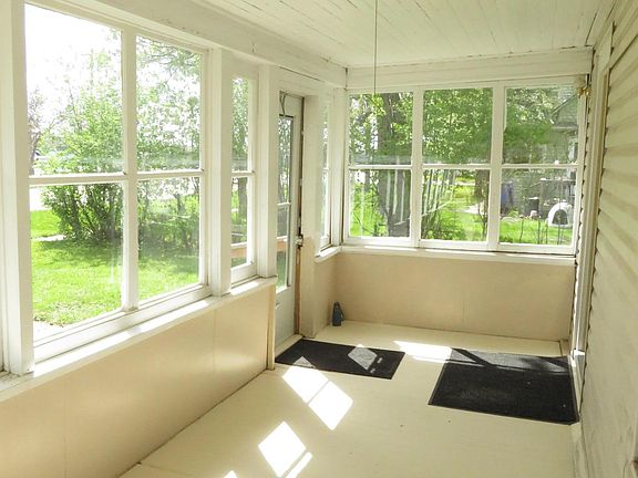 The main floor features the living room attached to a 3 season porch, informal dining, kitchen, 1/2 bath and main floor laundry. Refrigerator, electric range and window A/C unit are included.