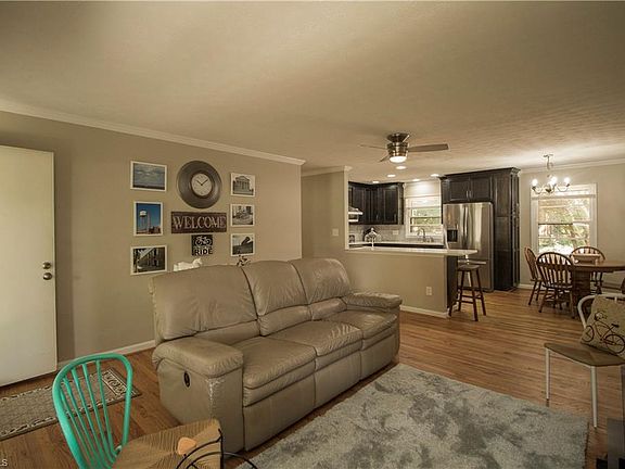 Motivated Sellers, back on the market at no fault of theirs! Super cute updated ranch on large private lot just minutes from major highway, shopping and more. Kitchen has been totally updated with Quartz counters, new cabinets, flooring and appliances. Hardwood flooring in all areas except bathrooms. Open living area to kitchen and dining. Spacious lot with outside storage building.