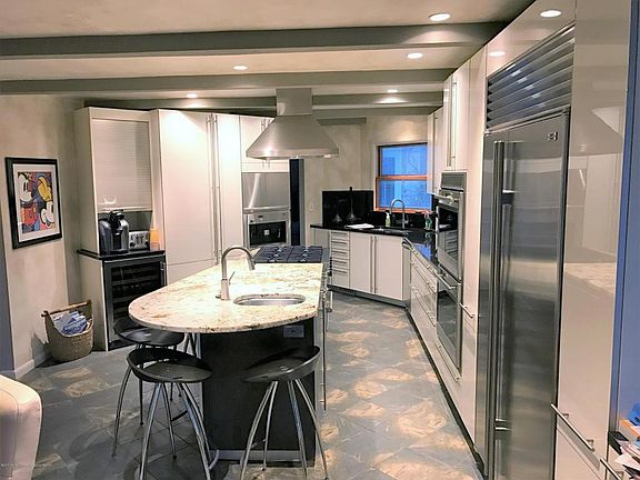 Not your Cookie Cutter Home. This home has a park-like feel w gorgeous Landscaping. The Poggenpohl gourmet Kitchen has Granite counters, a large Island housing a Viking 6 burner gas cook top, SS hood, high end appliances, Sub Zero, Wolf, Miele, two sinks, & coffee center. A gas fireplace completes this Dream Eat-in Kitchen. The Entertainment room has a hidden 108'' movie screen, surround sound, cove lighting, all remotely controlled. The Master Bedroom is located on the first floor , with French doors leading to the deck, Gunite pool & koi pond w waterfall. Full home generator, central vac, 3 zone H & A , finshished basement, stone floors & natural wood. It's a combination of nature and technology. Hugs you as you enter! Add 500 square feet for the addition of the great room. A MUST SEE