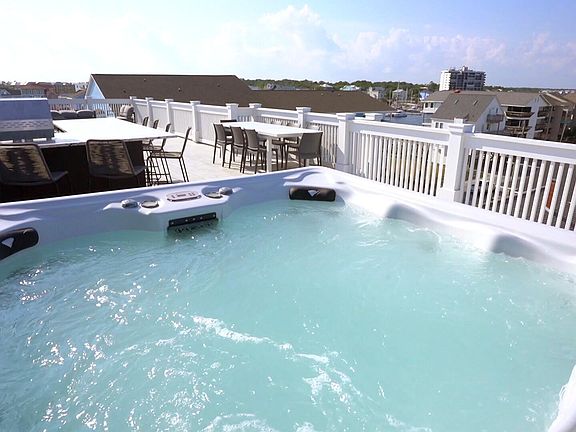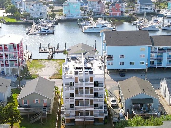No matter how you define luxury coastal living, this ocean and harbor view home delivers! Featuring 5 bedrooms 4 baths and 2,500 square feet, it's beautifully appointed with extras you and your guests will love, including a private elevator, two Bosch kitchens, oversized Samsung TVs throughout and a 1,300 square foot party-ready rooftop deck with grill, hot tub and additional TV. There's always a breeze for enjoying sunrises, sunsets and sunbathing from one of six personal porches or that expansive rooftop deck. You'll have a great view of the island's oceanfront fireworks, while dolphins, seabirds and the town's bustling boating scene provide endless entertainment on the harbor side. You may never want to leave this special enclave, but when you do, the beach is steps away, and it's a quick walk to the boardwalk and central business district restaurants, entertainment and shops. On top of the luxury and convenience, this home is extremely practical, with irrigation, DP50 wind rated windows and a whole house generator to keep you safe, powered up and comfortable in all kinds of weather. State-of-the-art cameras, security lighting and alarm system and a 10-point Wifi system ensure all is secure and connected from near and afar. Low maintenance LVP and tile floors are perfect for the home's sandy-toes locale, while quartz counter tops, Bosch appliances and white cabinets create an elegant, yet relaxed vibe. Another special feature is a self contained top floor primary suite with its very own full kitchen, bath and washer/dryer, allowing you to retreat to one floor while your guests or kids are in residence. Ground level you'll find parking for 4 cars, an outdoor shower and a fenced, landscaped pet-friendly back yard. This home is currently on a rental program. Invest now to capture off season come or make it your personal family oasis. **For info about our preferred lender and incentives you may qualify for, ask your agent to review agent comments for detai