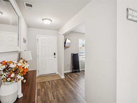 Welcome to this beautifully designed corner-lot home offering modern finishes, abundant natural light, and plenty of space for work, relaxation, and entertaining. Just off the entrance, you’ll find a dedicated office, perfect for working from home. The main level is perfect for entertaining with a convenient half bath, and an open-concept living area with recessed lighting that flows seamlessly into the kitchen and breakfast area. The kitchen is a true highlight with granite countertops, a new tile backsplash, crisp white cabinetry, a walk-in pantry, and a large island with seating. Stainless steel appliances complete the space, and direct access to the two-car garage and back patio adds everyday convenience. Upstairs, a loft landing provides additional living space, complemented by three secondary bedrooms each with walk-in closets. A full bath with granite countertop and linen storage serves this level, along with a laundry room featuring built-in shelving. The primary suite is a private retreat with a granite double vanity, a tub/shower combination, and a large walk-in closet. Outside, this home sits on a spacious corner lot with a large yard and an extended poured concrete patio—perfect for outdoor dining, gatherings, or simply enjoying the open space. This home combines style, comfort, and functionality, ready to welcome its next owners.
