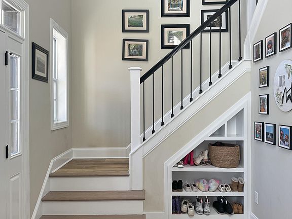 Outside, the private wooded backyard provides a serene retreat, perfect for enjoying outdoor gatherings or peaceful moments on your new screened in back porch. The exterior showcases Hardie plank siding with stone accents, adding to the home's curb appeal and durability.