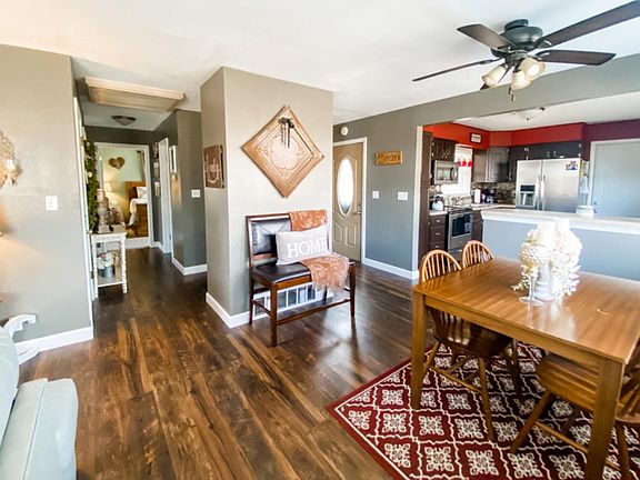 Beautiful ranch home with attached garage, huge fenced in backyard with new deck and landscaping. Great open floor plan on the main level with new flooring. The large kitchen has peninsula for seating, resurfaced counter tops, and matching appliances that stay with the home. The 2 bedrooms are on the main level and have new carpet. The primary bedroom has a large closet and currently fits a king sized bed. The second bedroom is a good size and can accommodate a queen size bed and dresser. The 2 bathrooms are on the main level as well. Laundry is in the larger bathroom that has a new shower. The 2nd bathroom has a new soaker tub and tile flooring. The main level of the home is 1100 square feet. The basement is also 1100 square feet and is partially finished. The finished side has a nice large room that is perfect for a family room, playroom or office. The unfinished side of the basement is perfect for storage and holds the new heater installed in 2019. The roof and gutters were replaced in 2020. This home has so many updates and storage space. Schedule your showing to see for yourself.