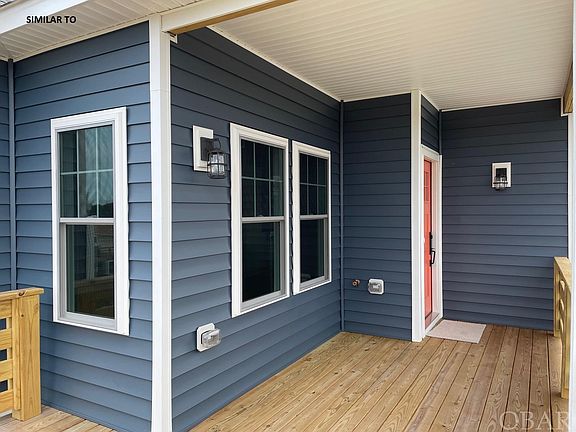 Premium construction home in the heart of Kill Devil Hills! Short distance to shopping, movies, entertainment and scenic sunsets of Bay Drive. This open floor plan combines comfortable living with ample storage. The top level with a covered entry porch opens up to a living room with premium vinyl plank flooring and 9’ceilings. Kitchen is outfitted with solid wood cabinetry, quartz countertops, farmhouse sink and pendant lighting. Central kitchen island offers desired storage space and make it perfect for gatherings and entertainment. Kitchen appliance package includes: refrigerator with ice maker, electric range, dishwasher, and over the range microwave. The top floor comprises master bedroom,  two guest bedrooms, full bath, linen closet. Master suite with a private bath with tile flooring, semi-custom tile shower and a double vanity with undermount rectangular sinks and quartz tops. It features walk-in-closet and cathedral ceiling. Two guest bedrooms share a full hallway bathroom with tile floors, single vanity, and shower/tub combination. The ground level provides a spacious and tall garage (approx. 13ft tall), sheltered carport, outside shower, and dry entry leading to a recreational room with wet bar, refrigerator and dishwasher. Additional guest bedroom, full bathroom and spacious laundry room with cabinet space.