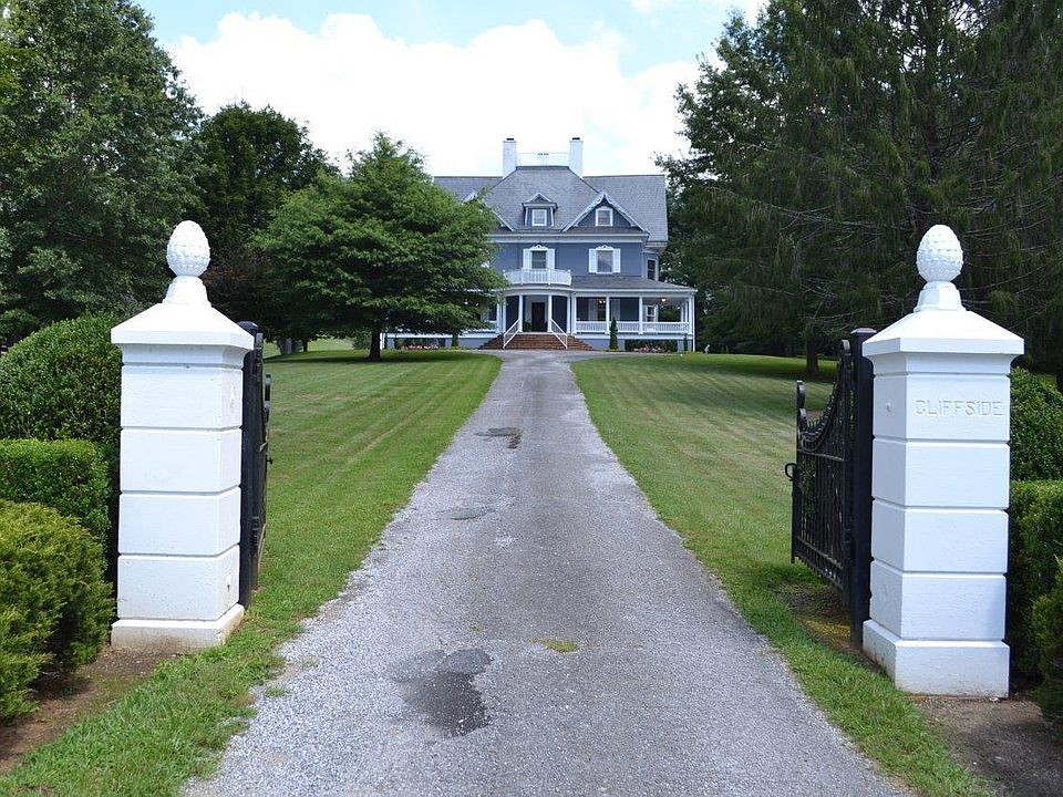 This beautiful Historic Country Estate located in Galax, Virginia was once the residence of Thomas L. Felts of the Baldwin-Felts Detective Agency. Originally built in 1902 & commonly known as the ''Cliffside Mansion,'' this magnificent 6100 SF Victorian Manor Home has been beautifully restored and includes 6 bedrooms and 4.5 bath. Property also includes 2 guest houses, 3 cottages, 3 barns and all sit on 21 acres on the New River Trail and Chestnut Creek. This property is ideal for full time living with rental income potential with the guest cottages or a wedding venue. Large barn has multiple stalls & upper level has a full-length basketball court. Schools: Galax Elementary, Carroll County Middle, Carroll County High.
