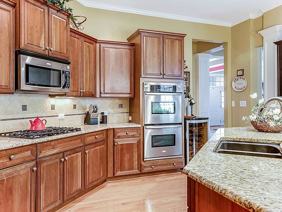 Stately 3-sided brick ranch in coveted Coles Creek. Elegant & open floorplan bathed in an abundance of natural light & designed for entertaining. Magnificent great room with built in bookshelves & dry bar, spacious theatre room with fireplace & wall of windows (also makes a stunning sunroom), gourmet kitchen with gas stove, and serene nature & pond views from the Carolina Room. Meticulously cared for with continuous top-quality upgrades such as newer hardwood flooring throughout all rooms. Even the garage floor sparkles with a beautiful epoxy coating! Custom storage cabinets in garage. Built by Drees Homes, known for superior quality and impressive architectural highlights. The primary bedroom boasts pond & nature view, spa-like bath with a garden tub and tiled shower, dual vanities & a huge walk-in closet. Media room is wired for stereo sound.