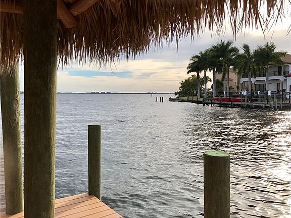 GORGEOUS VIEW OF RIVER AND WIDE CANAL JUST ONE HOUSE FROM RIVER! New Dock and Tiki Hut 2016 New AC and Pool Pump 2016. Neutral Tile throughout and Freshly Painted 2016. Beautiful 3 Bed 2 Bath + Den with Electric and Manual Shutters on all windows, sliders and doors. Formal Dining Room is currently being used as sitting room. Oversized Screened Lanai plus pool bath.