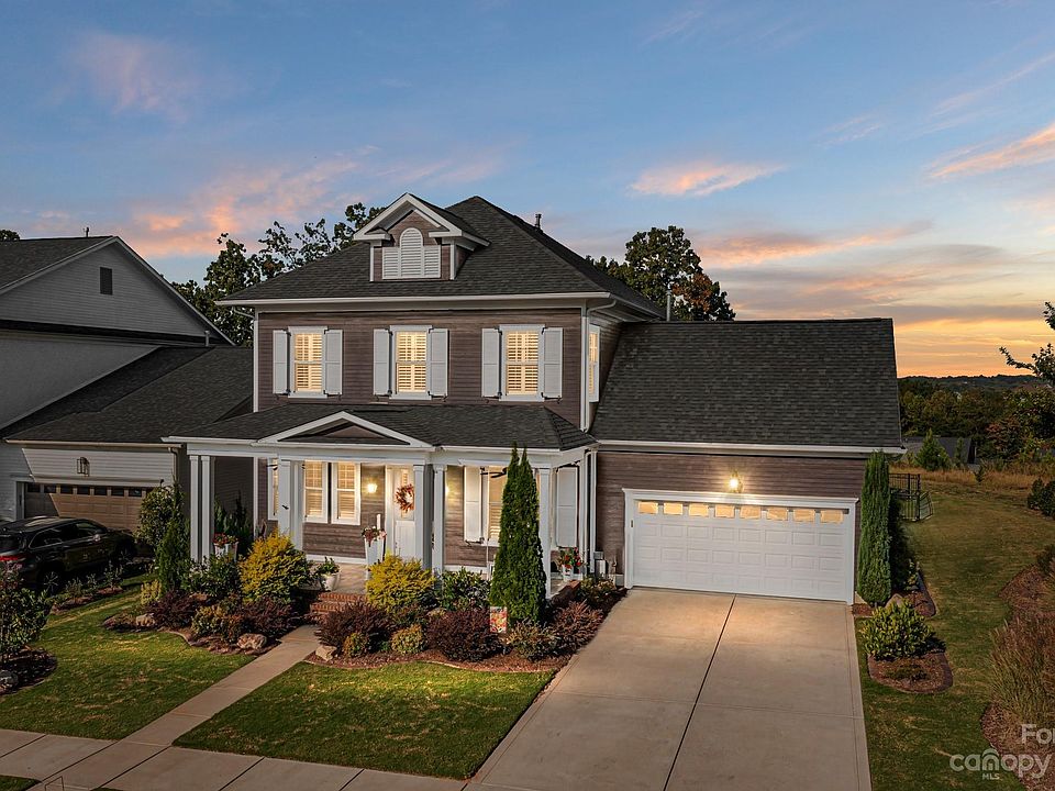 Stunning Masons Bend home! Rocking chair front porch for fine Southern Living! Popular Primary suite on main with his & her closets, soaking tub, upgraded cabinetry & counters. Open kitchen with expansive island is the heart of the home & will serve you well for entertaining friends & family-includes gas cooktop, wall oven, & sleek quartz countertops. Spacious dining area overlooks the backyard. Roomy office is perfect for those who work from home and provides privacy with the sliding barn doors! 3 Additional b/r's, 2 full baths & large bonus upstairs! Bonus room can be used as a B/R. Don't miss the massive storage space just off the bonus! Relax on the covered porch in the back as you enjoy the view! Professionally landscaped front and back yards, landscape lighting, inground irrigation. Plantation shutters throughout! Community offers outdoor pool, clubhouse w/gym, playgrounds, pocket parks, walking trails, river access, & award winning Ft Mill schools.
