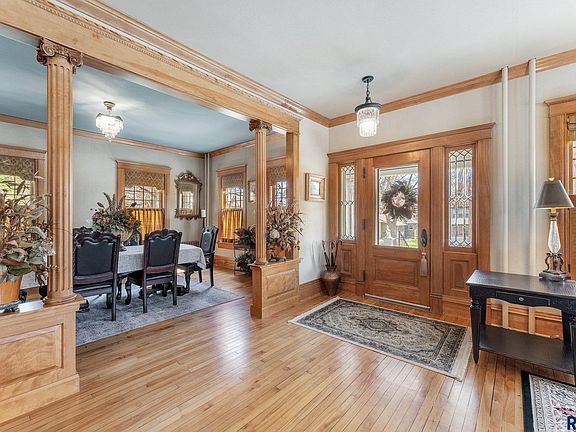 Discover elegance redefined in this stunning 19th-century home, meticulously restored to blend timeless charm with modern conveniences. This captivating residence features four bedrooms, three bathrooms, attached sunroom and more! Upon entering, you're welcomed by soaring ceilings and abundant natural light in the grand entry, which leads seamlessly into a formal living room with an inviting gas fireplace, adjacent to the formal dining room. Both areas are enhanced with crown molding and refinished original wood floors that extend throughout the main level. The kitchen is a chef’s dream, boasting an array of cherry cabinets, commercial-grade appliances, and a flawlessly designed breakfast nook. The attached sunroom, complete with heated floors and panoramic views of the secluded lot, provides a serene retreat. Call for a tour and experience this unique blend of past and present yourself.