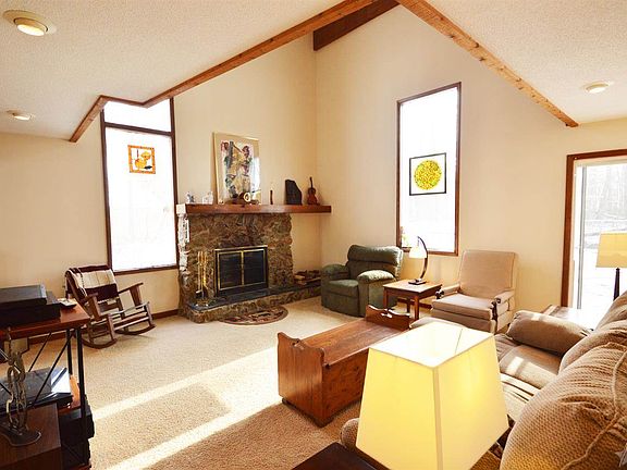 Beautiful private wooded setting with 1.2 acres! Completely updated custom built home with open floor plan. New septic in 2005. New 200 amp electrical service, water softener, fence, stainless flue liner and cap - chimney, new heat pump-air, new kitchen with cabinets, countertops, sink, flooring, lighting, range, and microwave all in 2009. Includes a new sliding glass door, 1/2 bath vanity & light, full bath vanity, flooring, lighting & tub reglazed. Master bath has new vanity, flooring, shower, toilet and lighting. 7 new ceiling fans. New carpeting in bedrooms. Updates in 2001 include a new water heater, new 24x33 garage w/concrete floor. New laundry room/mud room in 2012. New tear-off roof and gutter guards in 2012. New kitchen window in 2012. New well and den flooring in 2013. This is a great home with a 2 story great room with great light and fireplace. This home is in excellent condition.