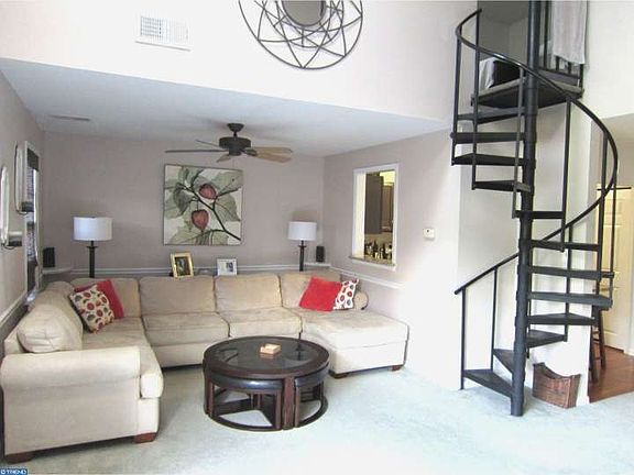Sophisticated 2 story condo in the sought after community of Highspire. Beautifully maintained with private open wooded views from large deck. Entry Foyer with stairs to main level and double coat closet. Spacious and sunny cathedral ceiling great room with fireplace, chair rail, skylights and sliders to newly stained deck. Formal dining room and kitchen with hardwood floors and stainless steel appliances, breakfast bar and separate coffee bar. Utility closet with sink and laundry closet with washer and dryer. Large master bedroom with ceiling fan, walk-in closet and tiled bath with double vanity. Spiral stairs to loft bedroom with office area, featuring skylights, ceiling fan and double closet. New tiled full bath. Great location with easy access to major roads and shopping.