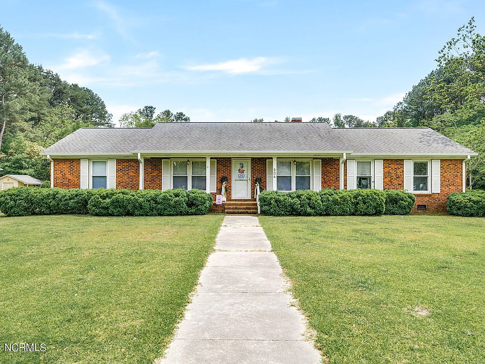This 3 bedroom 2 bath brick ranch sits on a lovely .42 acre corner lot just on the edge of town. Upon entering the front door, you step into a formal dining/living area that is perfect for entertaining. To the right you walk into the spacious kitchen that has an ample amount of cabinet space. To the left of the kitchen is a den area that has built-in shelving and a lovely brick fireplace. The master bedroom has a large walk-in closet and in-suite bathroom that has been recently updated. The whole home has a fresh coat of paint and the carpeting has been professionally cleaned. This property has an attached garage with laundry room as well as a detached garage with carport, so there is plenty of room for you vehicles and storage needs. An added plus is there are three pecan trees, two fig trees and grapevines in the yard. This home is move-in ready and won't last long! Schedule your showing today!