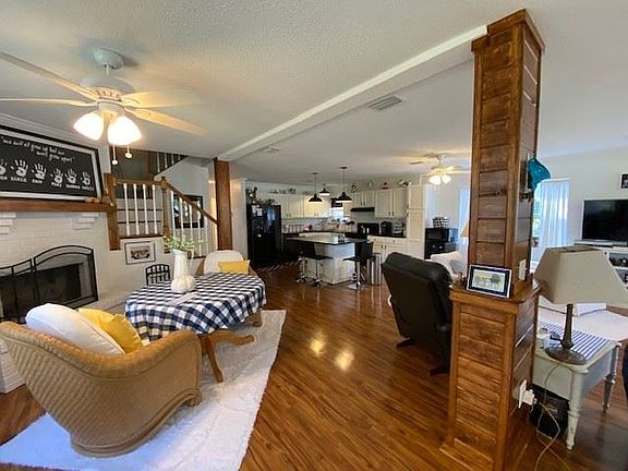 Immaculate Cottage located on Coveted Fort King George Drive in the Historic City of Darien. Spacious Open Floor Plan with Windows galore giving plenty of natural light. Cozy Corner Fire Place accents the space and the Remodeled Kitchen is perfect to prepare meals and entertain family and friends. Lots of Storage. Functional island/breakfast bar overlooking the fireplace and open living area. Large First Floor Primary Bedroom with walk in closet and hard wood floors with additional mini split so you can cool/heat the room to your desire temperature. Primary Bath with tiled shower and built in cabinet & shelving with marble double sink vanity. Two additional bedrooms upstairs with guest bath tub/shower and a flex bonus room currently used as 4th bedroom. Downstairs find the oversized laundry room with laundry tub and more storage. Luxury Vinyl Plank Flooring throughout living area. Fenced back yard and mature trees.