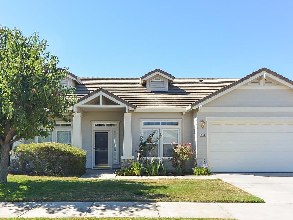 Beautiful home in upscale neighborhood! Spacious great room with fireplace and French doors to rear. Large kitchen has white cabinets, black appliances, island with sink, built-in double ovens, pantry, and tile flooring and counters. Gracious master suite has rear yard access, separate tub/shower, dual vanities, and walk-in closet. Well-manicured front landscaping with rear covered patio and large rear yard. Dual pane windows and ceiling fans throughout.
